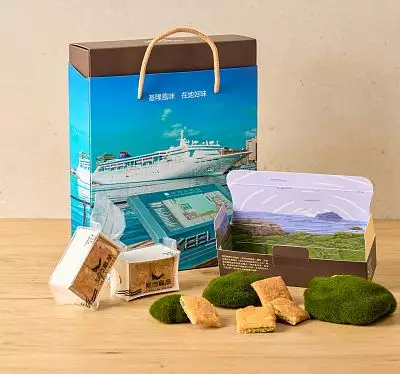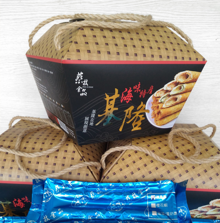 有一次過年時,跟兒子一起吃著朋友送的蛋捲,兒子忽然冒出一句話:「爸爸,為甚麼蛋捲都是甜的?難道沒有其他的口味,像是鹹的之類….。」由於兒子的一句「為什麼?」讓我產生了做蛋捲的念頭,既然在做食品加工,剛好可以來試看看。基於對基隆的在地情懷,決定做海味蛋捲。剛開始的時候,是將旗魚酥直接混入蛋捲麵糊中,但是口很感普通,正思索著如何調整時,兒子突發奇想:「為何不把魚酥包進蛋捲的夾層裡?」經過上百次的失敗嘗試(餅皮破裂),加上調整配料及內容物,終於研發出蛋捲新的生命及賦予不同層次口感,台灣第一家『海味夾心手工蛋捲』就此誕生。