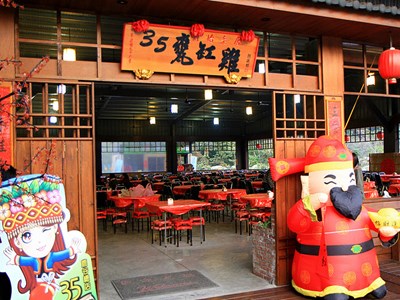 南投甕缸雞創始店‧美味道地小吃 位於鹿谷的35甕缸雞,以特殊作法、獨家口味的甕缸雞打響名號,是許多往返溪頭、鹿谷地區遊客絕佳用餐選擇。此外,35甕缸雞也是南投地區甕缸雞的創始店,是不可錯過的道地小吃。 美味甕缸雞‧皮酥肉嫩 35甕缸雞是選用放山雞,搭配陶甕、龍眼樹木材烹烤,使得烤出來的雞肉肉質鮮甜、口感Q嫩,特別的是,即使經過幾個小時冷掉之後,雞肉仍然Q嫩不乾澀,不失美味,因此遊客除了可以在店裡享用之外,也可以外帶回去,鮮度不打折。