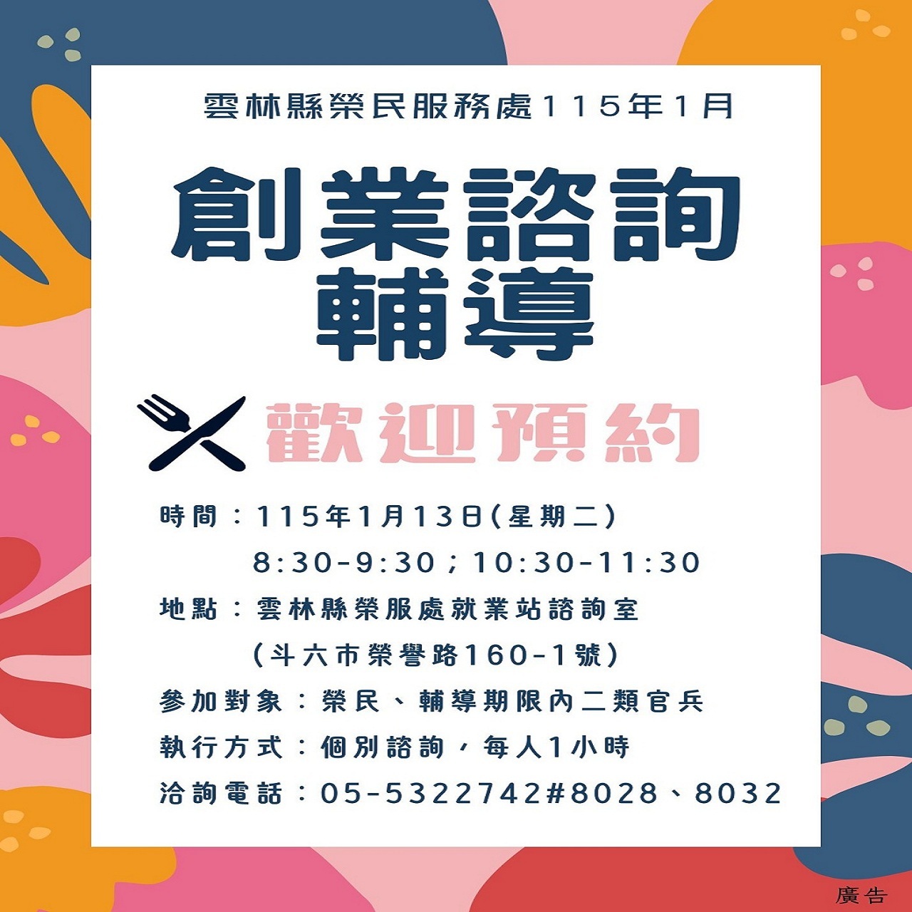 地點:本處就業站諮詢室(斗六市榮譽路160-1號)