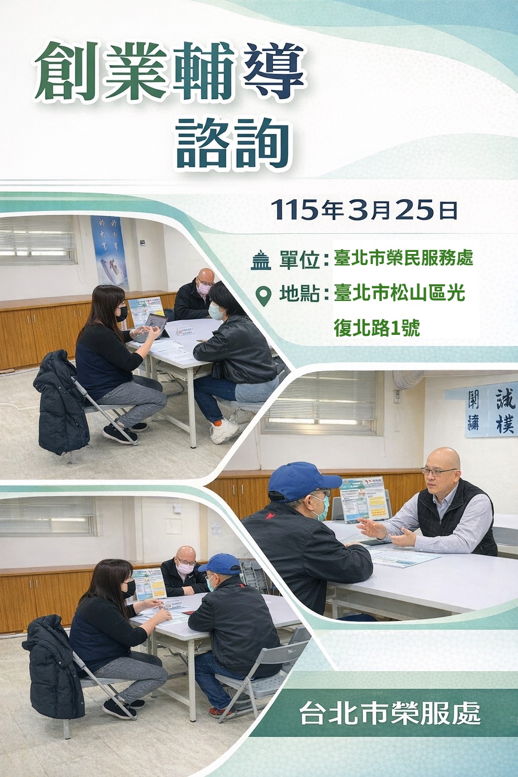 臺北市榮民服務處辦理115年度「退除役官兵創業諮詢輔導服務(一)」